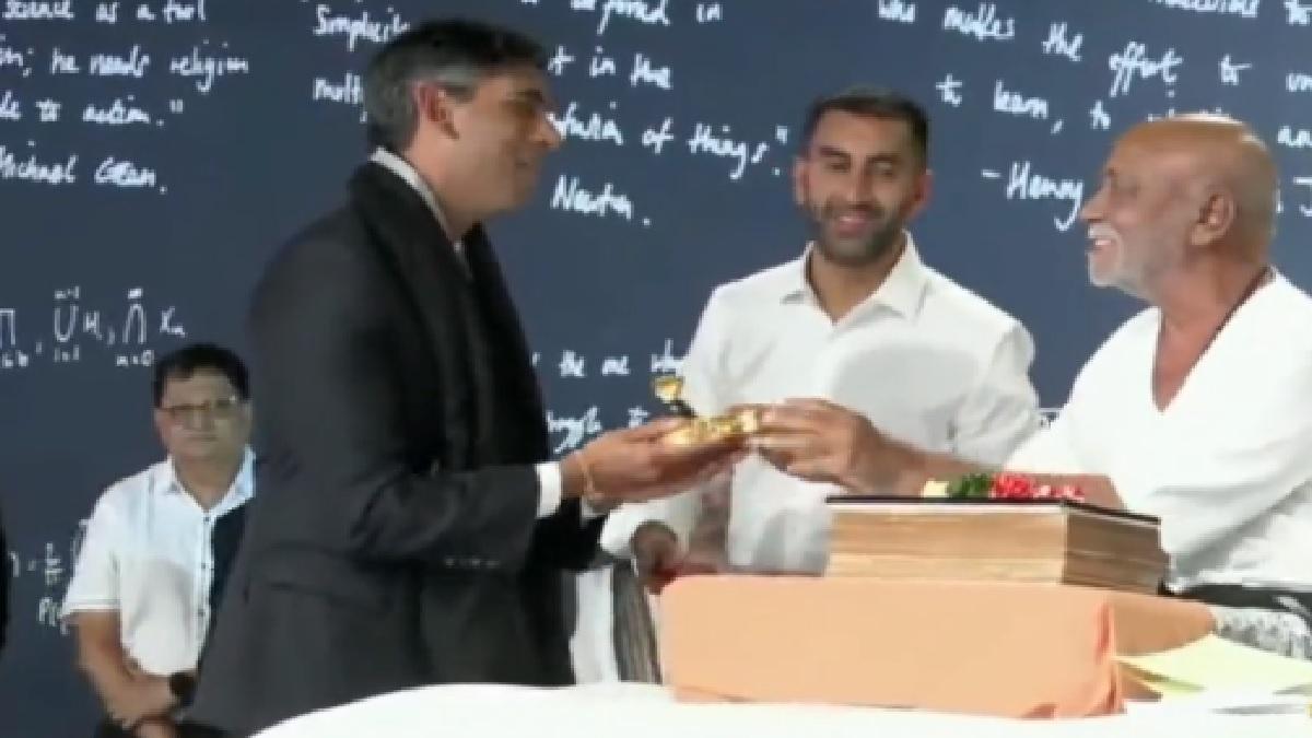 ब्रिटेन के प्रधानमंत्री ऋषि सुनक मंगलवार को कैम्ब्रिज यूनिवर्सिटी के जीसस कॉलेज में आध्यात्मिक गुरु मोरारी बापू की ‘रामकथा’ में शामिल हुए। इस दौरान सुनक ने मोरारी बापू की व्यासपीठ पर ‘जय सियाराम’ का नारा लगाते हुए पुष्पांजलि भी अर्पित की। ब्रिटेन के प्रधानमंत्री ने भारत के स्वतंतत्रा दिवस के दिन इस कार्यक्रम के संयोग को भी रेखांकित किया। ‘रामकथा’ में जुटी भीड़ के सामने सुनक ने अपना संबोधन शुरू करते हुए कहा, ‘बापू, मैं यहां पर एक प्रधानमंत्री के तौर पर नहीं बल्कि हिंदू के तौर पर आया हूं।’